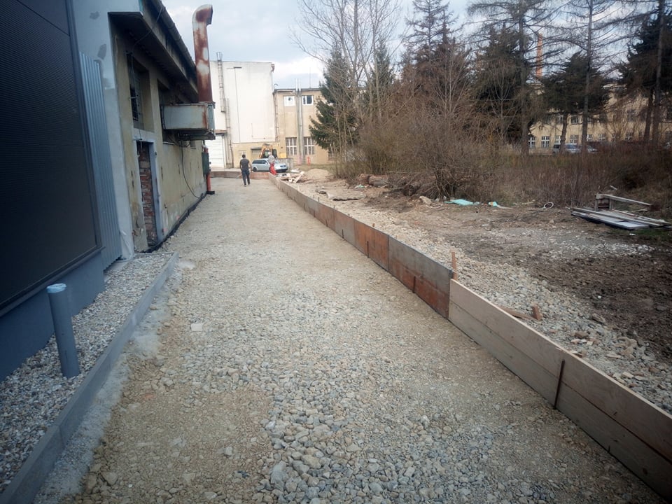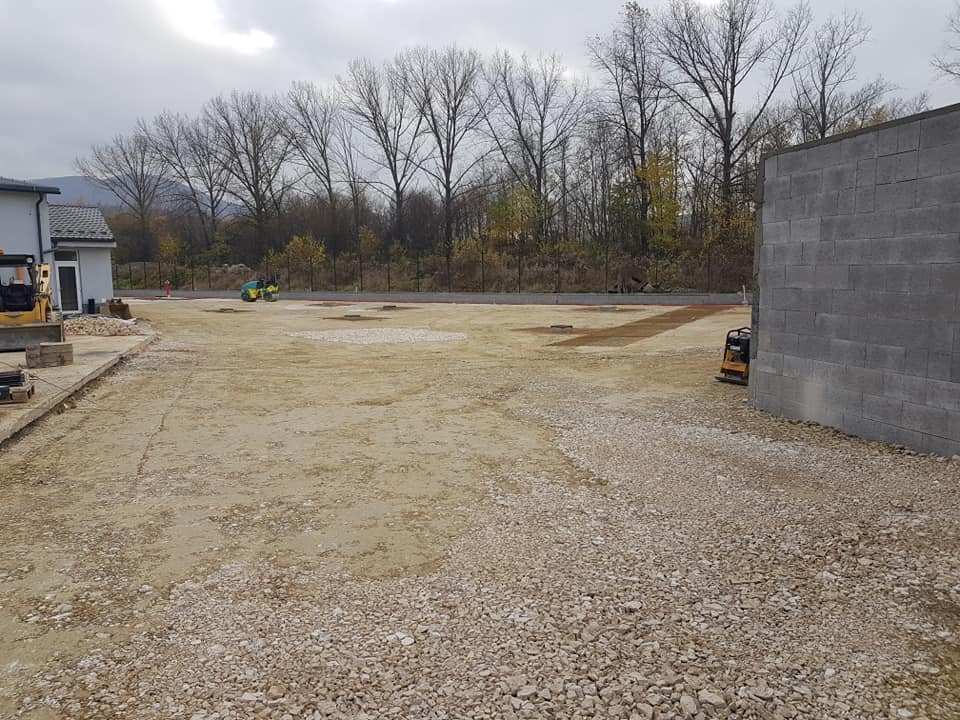 - výstavba komuníkácii (parkovacie a skladovacie plochy, chodníky, atď)