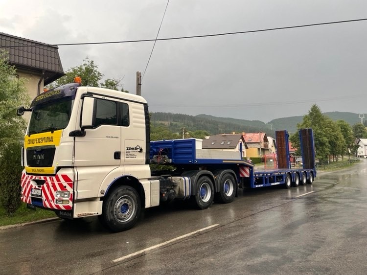 Špeciálny rozťahovací podvalník na prepravu ťažkej techniky a strojov .