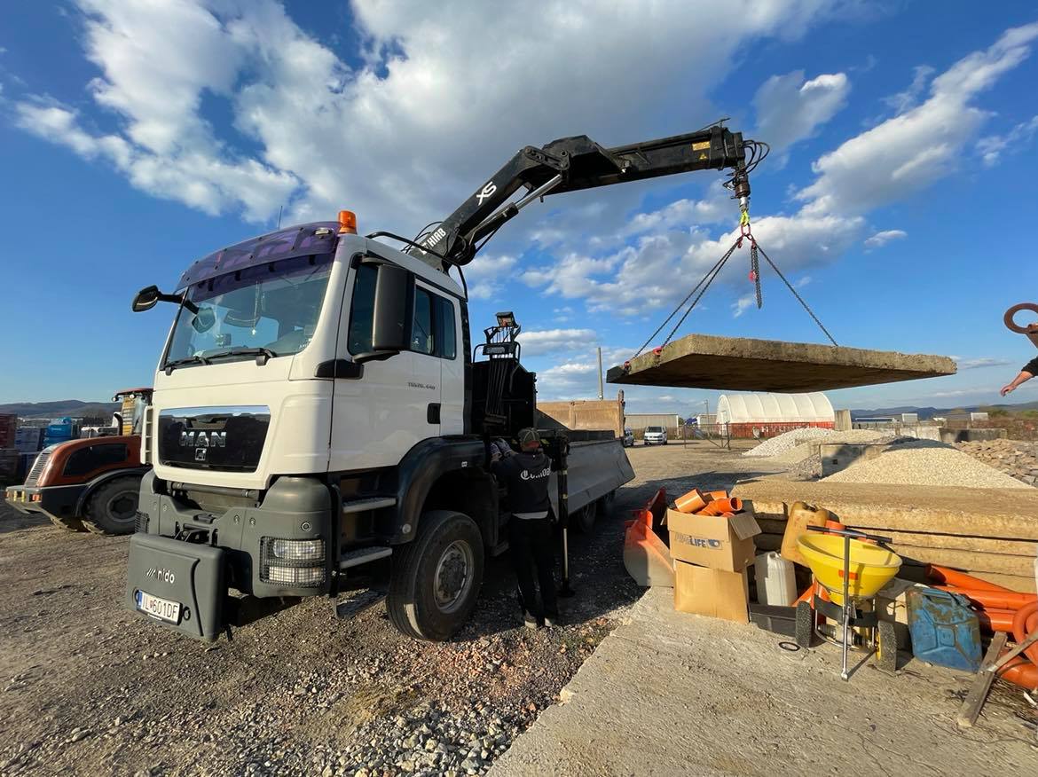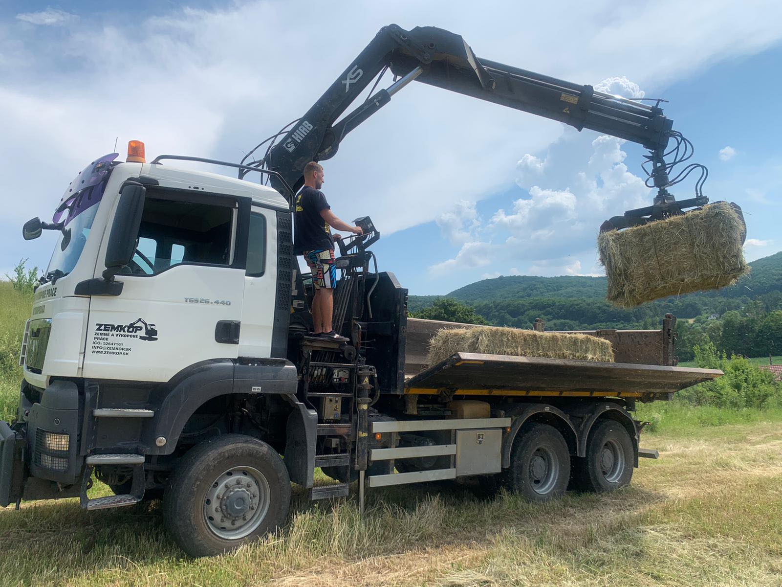 - práce hydraulickou rukou s drapákom MAN TGS 6x6